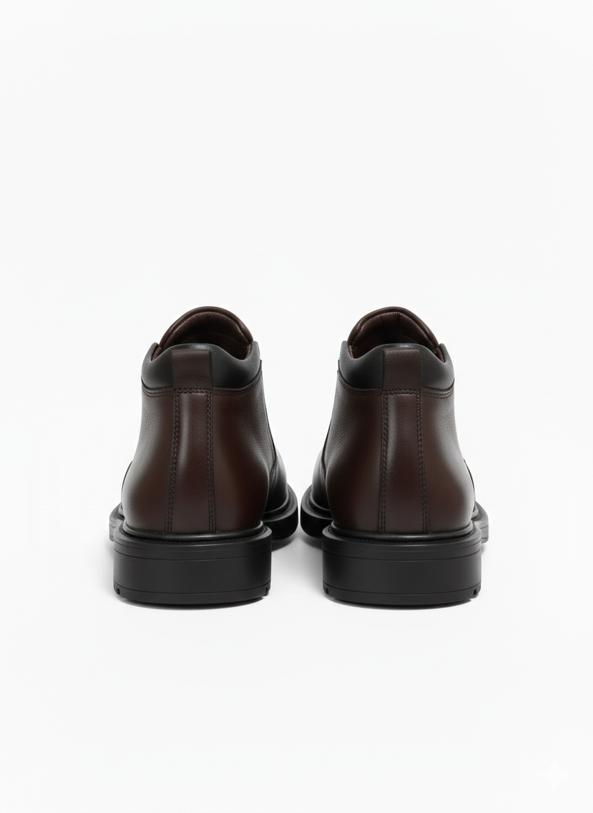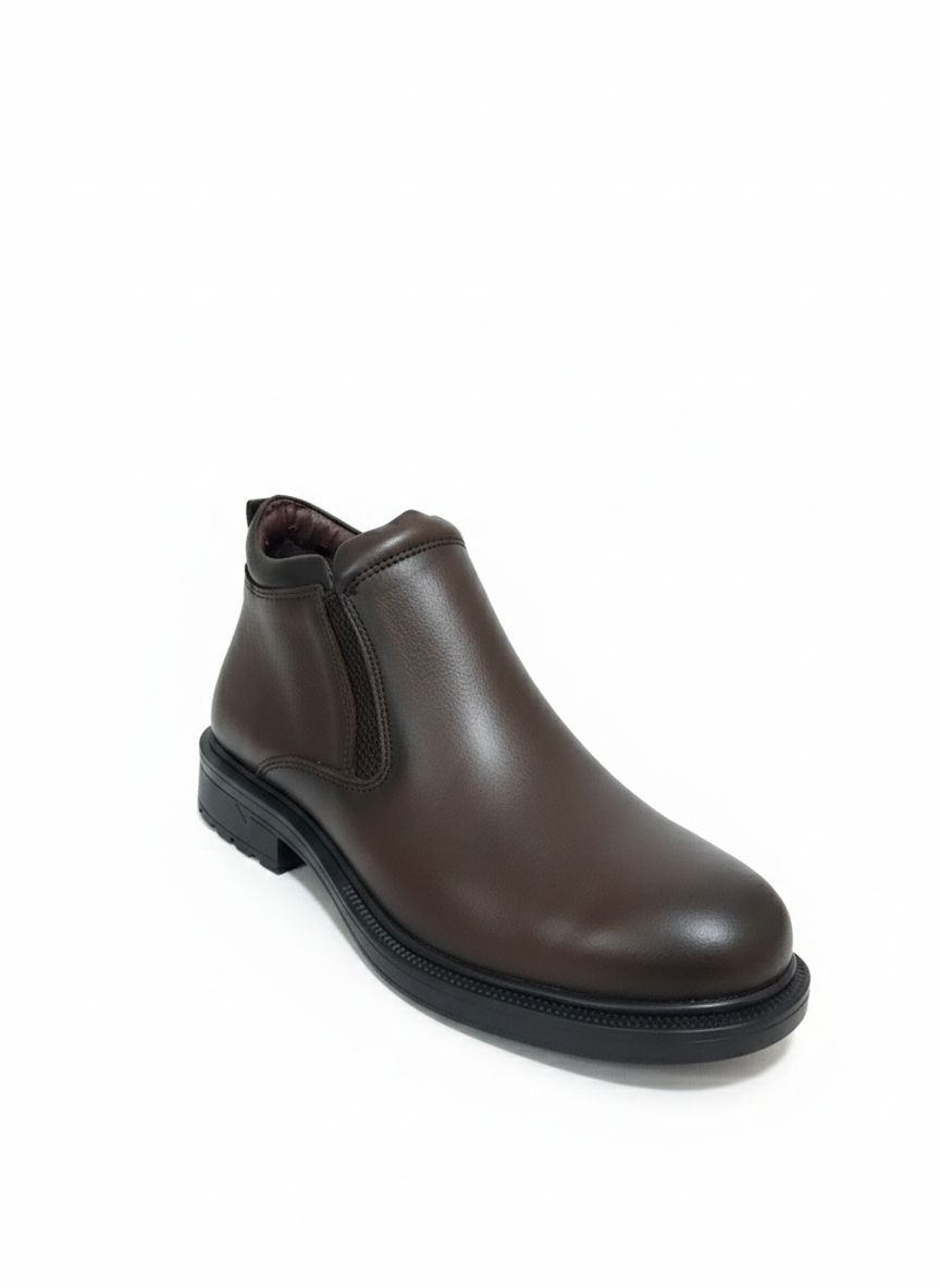 أناقة دافئة وعملية في نفس الوقت. هاف بوت مصنوع من الجلد الطبيعي بلون بني راقي بلمسة مطفية ناعمة، تصميمه السهل بدون أربطة يجعله اختيار مثالي للرجل اللي يحب الراحة والستايل الهادئ.