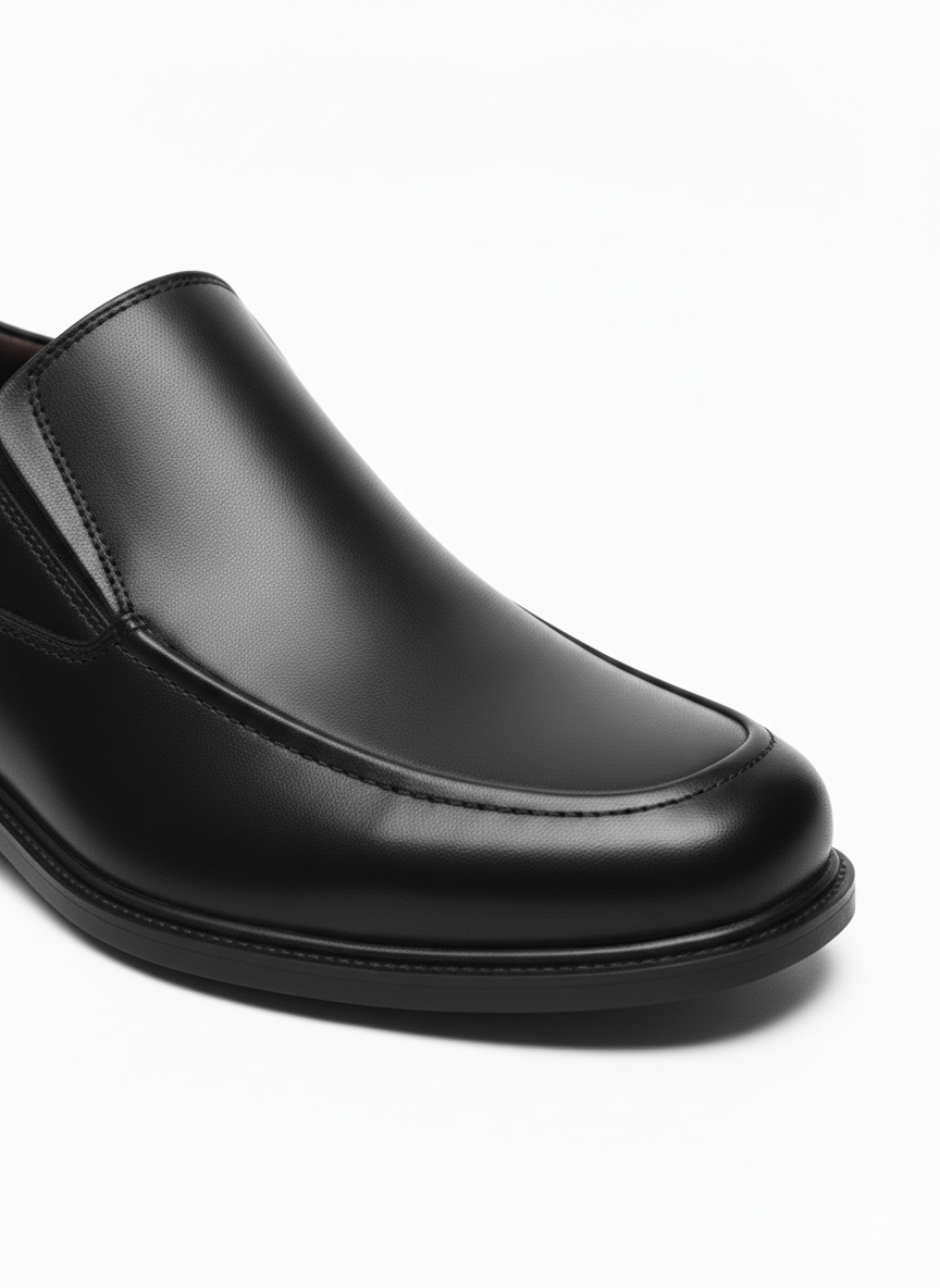Timeless elegance. This slip-on shoe, crafted from premium genuine leather with a sophisticated matte finish, is designed for the man who appreciates a clean, formal look without unnecessary embellishments. Its simple design, featuring elegant front stitching, gives you a commanding presence and confidence for any occasion.