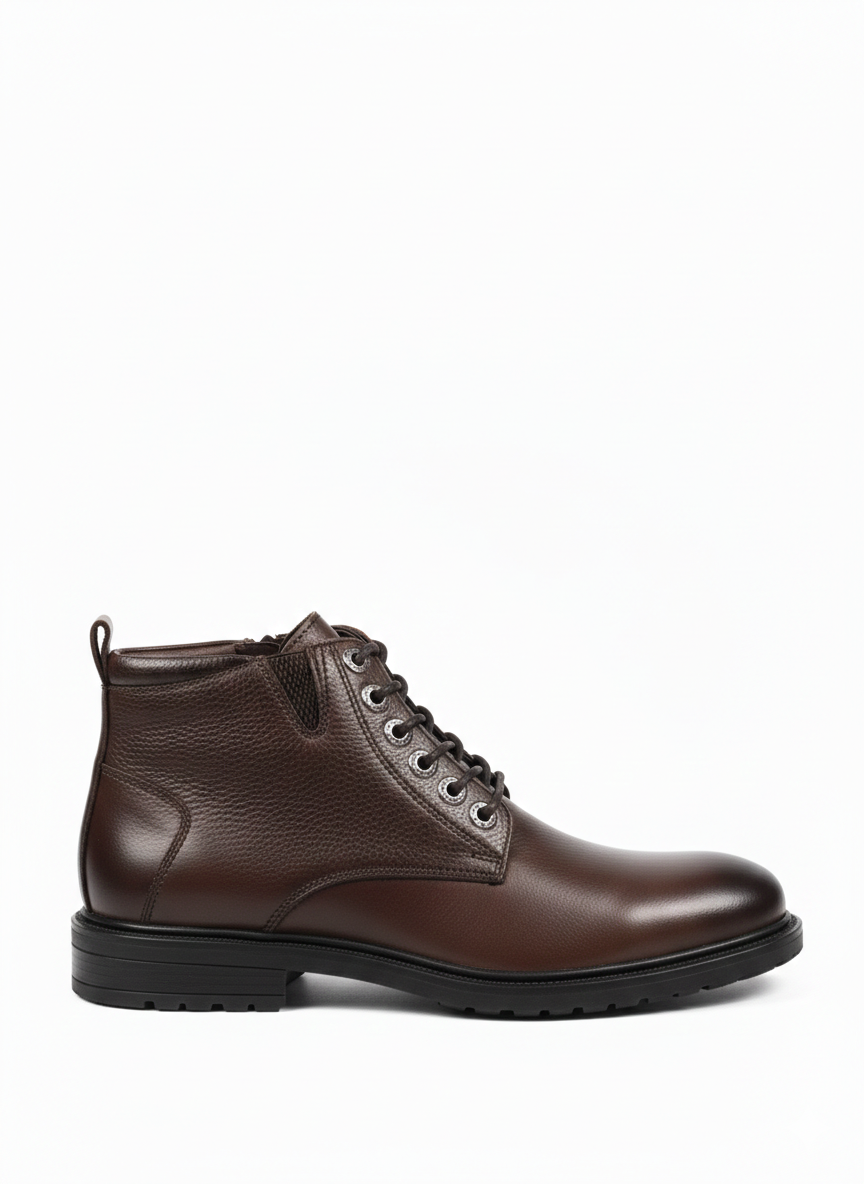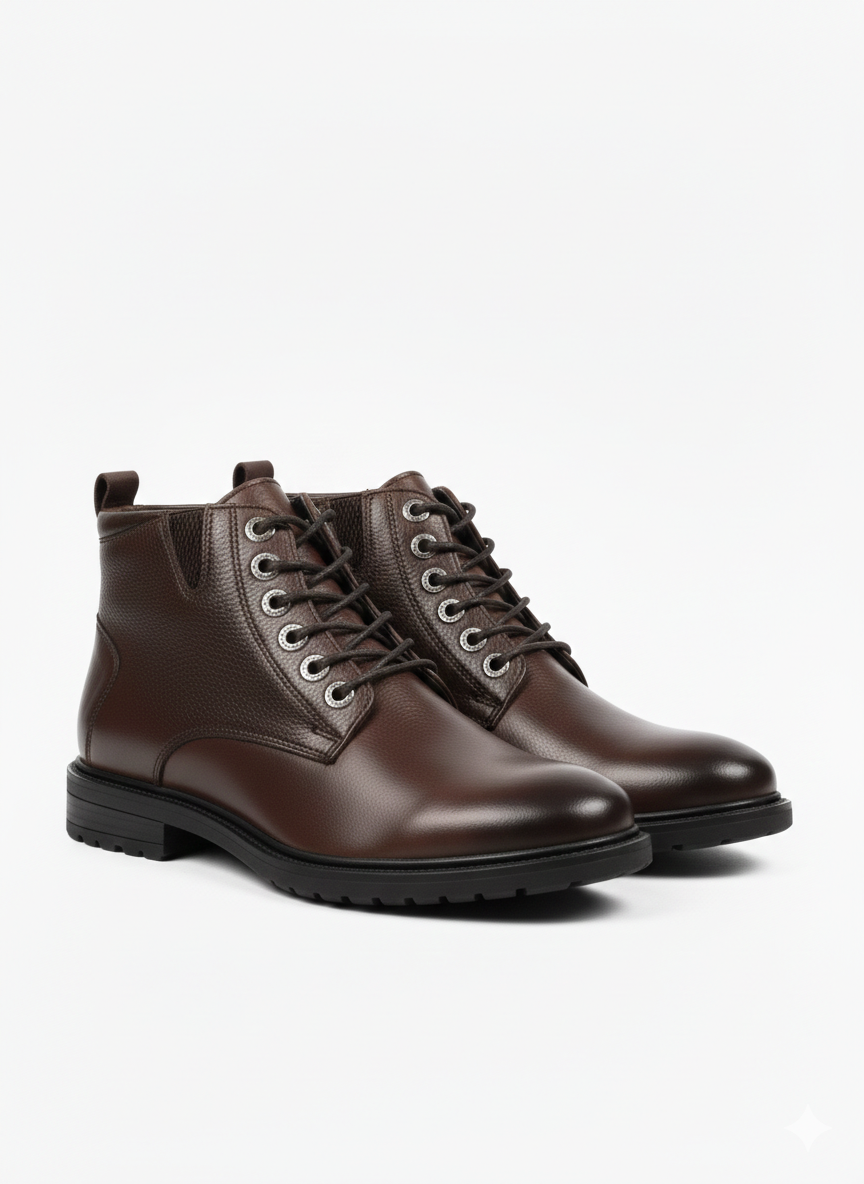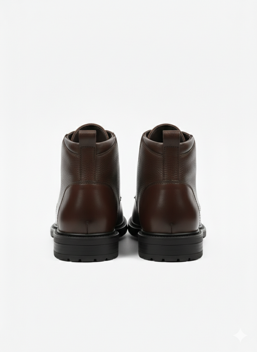 أناقة دافئة بتفاصيل راقية تناسب كل إطلالة شتوية مميزة. هاف بوت من الجلد الطبيعي بلون بني غني بلمسة مطفية، يجمع بين الفخامة العملية والراحة اليومية.