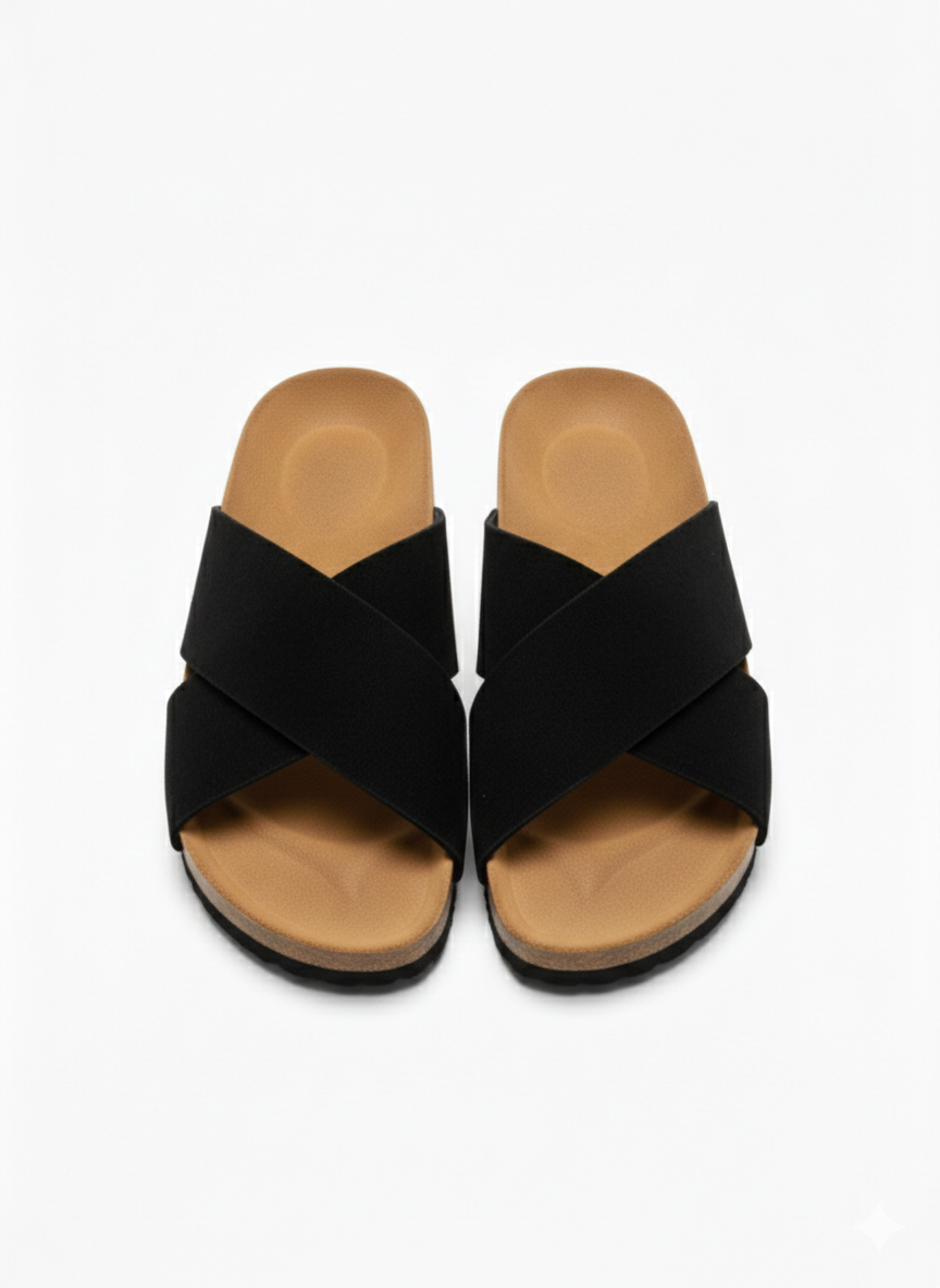 اختيار عملي وأنيق للاستخدام اليومي. سليبر بتصميم متقاطع يمنح ثبات مريح على القدم، مع شكل عصري سهل التنسيق مع أي إطلالة.